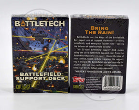 This 55-card Battlefield Support Deck makes using the sleek Battlefield Support rules from the BattleMech Manual even easier. Choose the size of your conflict, select cads to represent the support you'll bring to the battlefield, and you're ready for a game. Unleash your cards at critical moments to help your 'Mechs defeat your opponent!