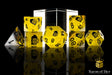 This set embodies a freshly poured beer. For the dwarves in their alehouses, human soldiers cheering after a victory, or a group of friends coming together. The dice are hand polished sharp corners, unique amongst our collection. They are a crystal clear translucent ale color layered with a foamy white head and inlaid with a pure black; premium hand-mixed resin 16mm dice set containing D4, D6, D8, D10, D10, D12, and D20.