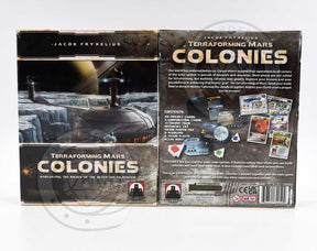 Terraforming Mars: Colonies, an expansion for Terraforming Mars that can be played with only the base game or with any combination of expansions, lets you visit the outer solar system. It features colony tiles where you can build colonies and send your trade fleet. It also includes new cards and corporations.